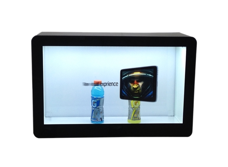 32寸透明屏展示柜,采用LG/京东方原装透明屏面板,全高清分辨率,2k分辨率,箱体材质:钣金,外观烤漆工艺。
